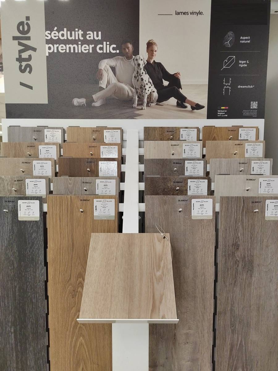 Nous exposons au sol et dans des présentoirs des dalles de vinyle aspect bois ou béton dans notre showroom à Yvetot 76. Vous pourrez y découvrir une grande variété de styles et de coloris adaptés à tous vos projets, que ce soit pour des espaces résidentiels ou commerciaux.