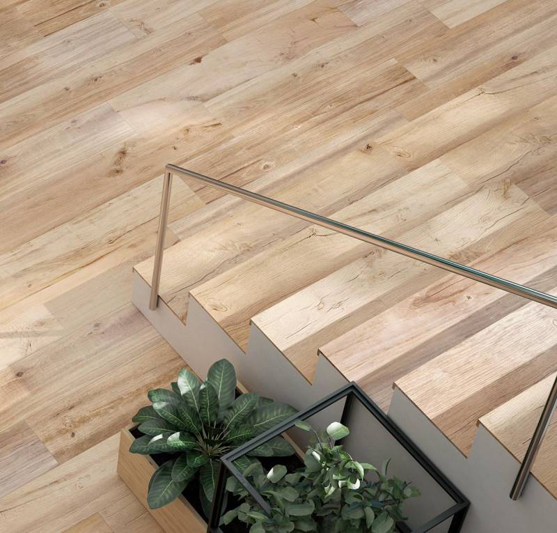 Il est posé dans notre showroom de carrelage situé à Yvetot 76 au sol dans le coloris natural. Il existe en 4 couleurs ash, camel, natural et maple. Disponible en version lisse ou antidérapante, il peut être mis partout dans la maison (sol intérieur, terrasse, faïence murale…)