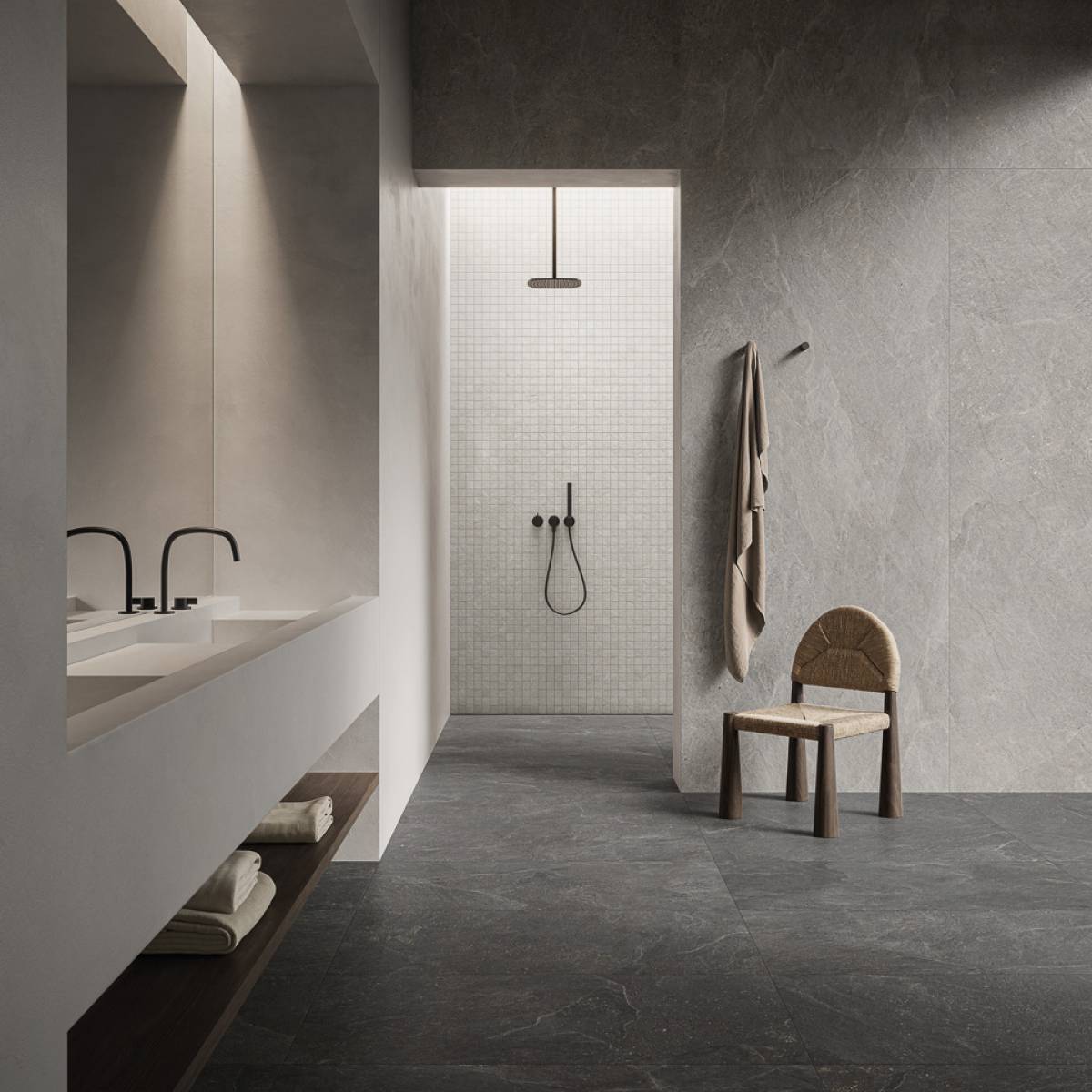 Design minéral, relief délicat, teintes profondes. La collection Moonstone séduit par son aspect authentique, directement inspiré de l’ardesia précieuse des Alpes de Val Brembana. Ce carrelage évoque la beauté brute des paysages lunaires et l’élégance naturelle des pierres taillées, avec un rendu sophistiqué qui sublime tous les projets d’aménagement intérieur ou extérieur.