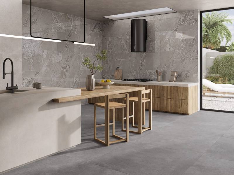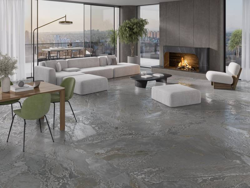Formats proposés : 60x120, 90x90 et 120x120, parfaits pour les grands volumes ou pour créer des effets visuels spectaculaires.