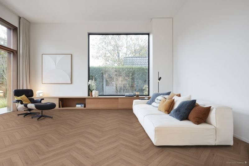 Plongez dans l'univers envoûtant de Chateau, une fusion harmonieuse entre modernité et tradition. Ce stratifié à chevrons révolutionne l'esthétique du parquet classique, offrant 15 motifs bois naturel d'une élégance intemporelle. Les lames étroites captent l'essence même de ce design séculaire, créant ainsi une atmosphère raffinée dans chaque espace.