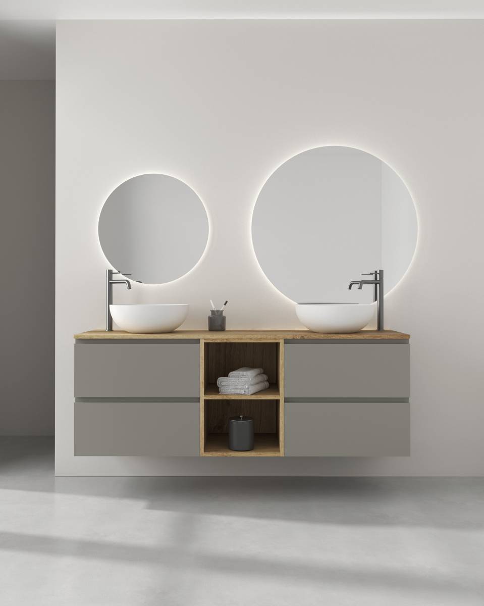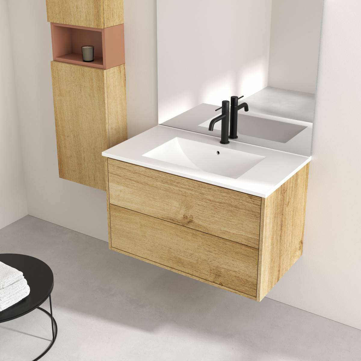 HARMONIE propose des meubles dotés de tiroirs coulissants et de portes équipées d’un système de fermeture progressive, garantissant confort d’utilisation et durabilité. Les finitions disponibles, mélaminé chêne doré, argile ou laqué blanc mat, permettent de s’harmoniser avec tous les styles de salles de bains, qu’ils soient modernes ou intemporels.