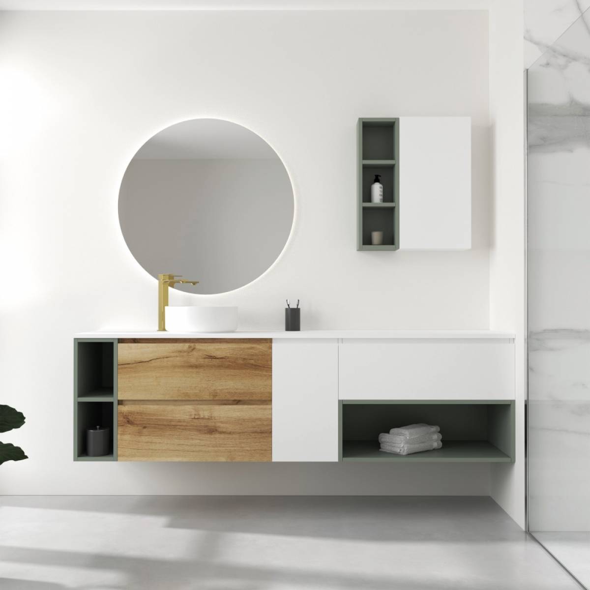 Pour optimiser le rangement, cette collection offre également des modules, niches et colonnes de rangement dans des coloris tendance comme le laqué terre cuite ou le vert sauge. Ces éléments complémentaires permettent de personnaliser votre salle de bains selon vos besoins et vos contraintes d’espace.