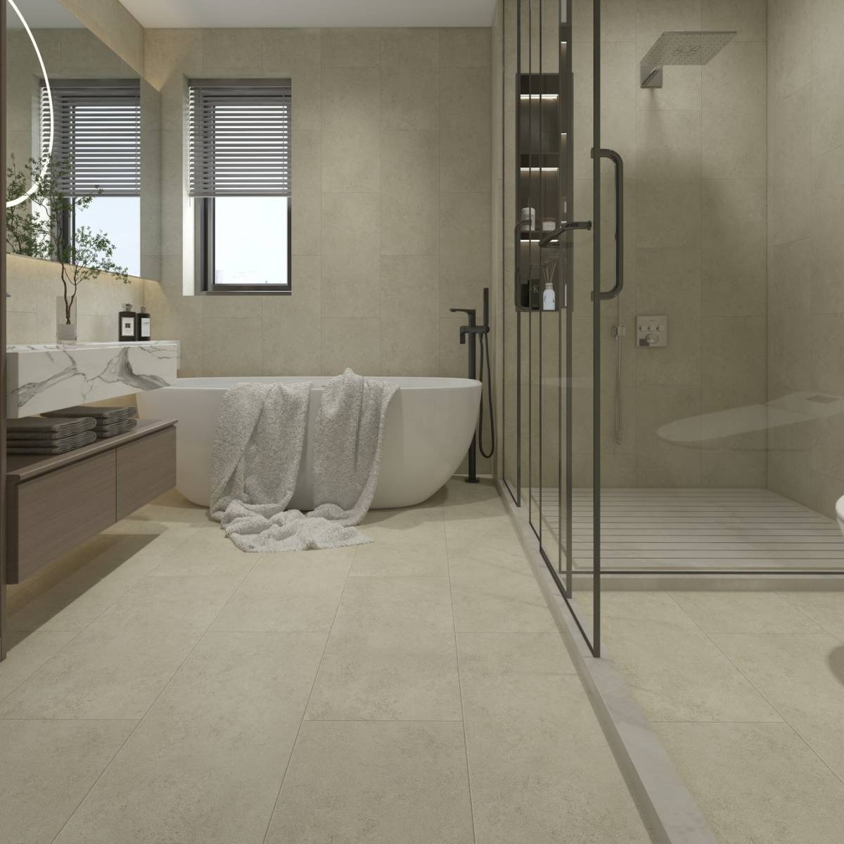 Le sol vinyle aspect pierre naturelle de Carrelages DENTE reproduit fidèlement l'apparence et la texture de la pierre naturelle beige, apportant ainsi une touche d'authenticité à vos espaces intérieurs. Ces dalles rectangulaires en vinyle offrent une alternative polyvalente et abordable à la pierre naturelle, tout en conservant son esthétique naturelle.
